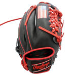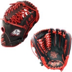 COLOR: BLACK STEERHIDE LEATHER, RED PRO LACE, RED ON BLACK RAWLINGS PATCHES, UTAH TECH TRAILBLAZERS EMBLEM ON THUMB