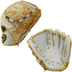 COLOR: WHITE DRAGON KIMONO FINGER BACKS, WHITE PALM LEATHER, METALLIC GOLD LACE, GOLD BINDING