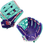 COLOR: PURPLE & SEAFOAM PRO STOCK SELECT LEATHER, PINK PRO STOCK LACE, SEAFOAM DUAL WELTING AND BINDING, GRADIENT WILSON LOGOS
